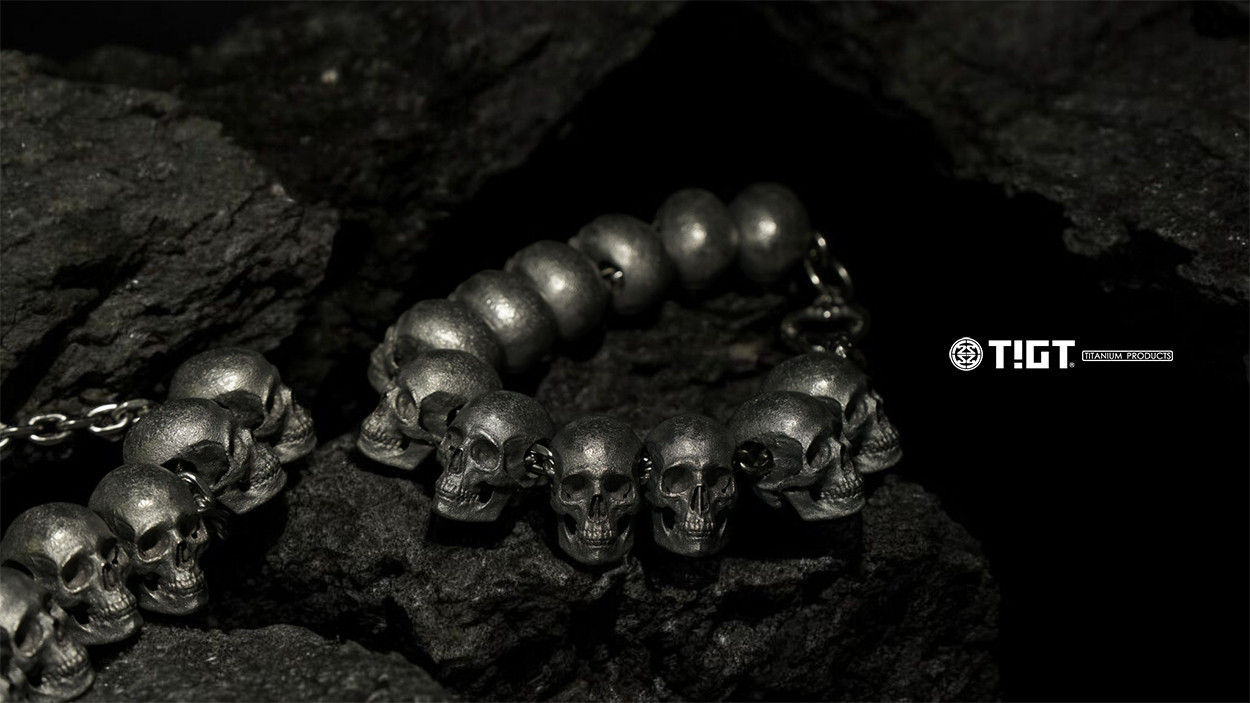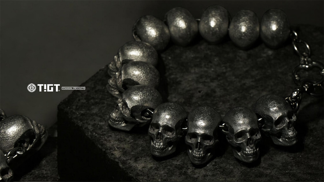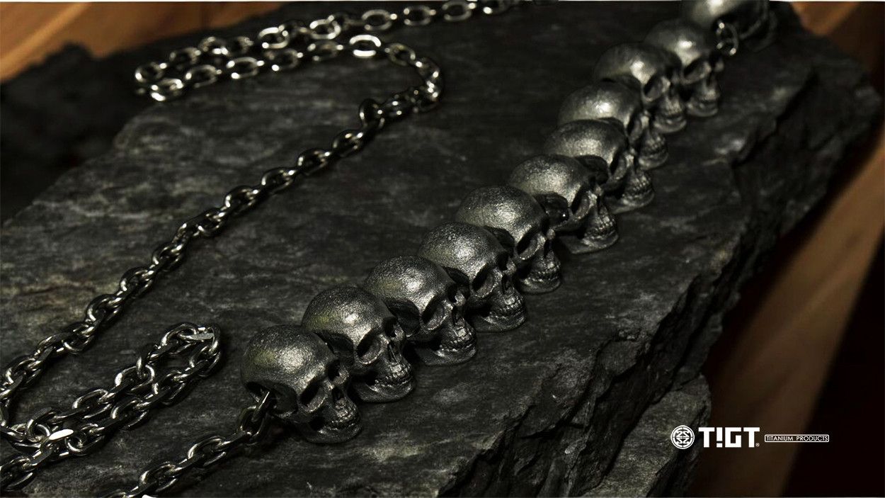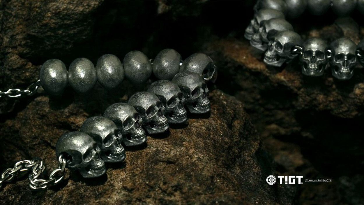 鈦製骷髏頭手鍊 - 含有總數 18 顆鈦金屬骷髏頭 + 鈦鍊套件等