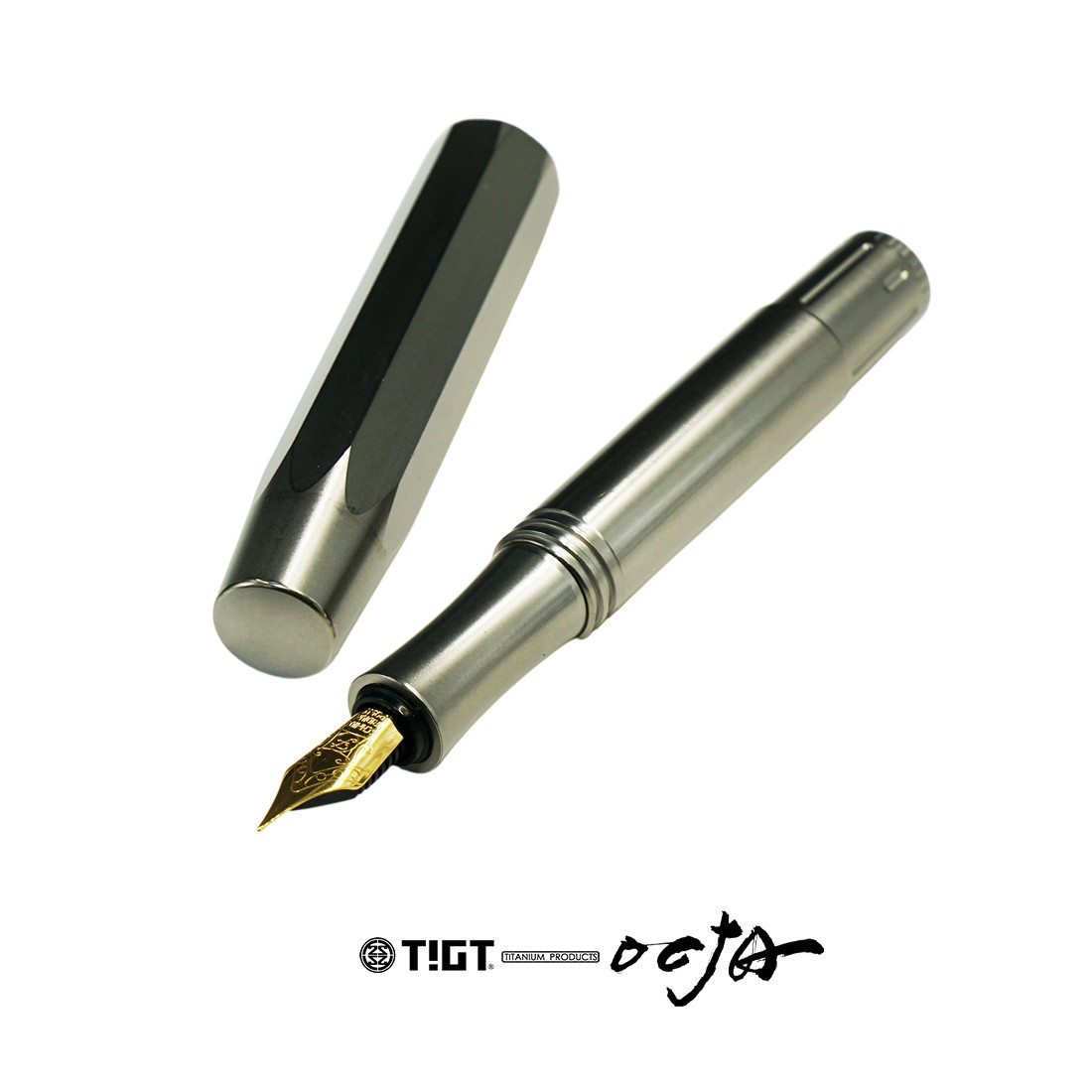鈦金屬八角短版鋼筆 - 不銹鋼筆夾 + SCHMIDT 筆尖